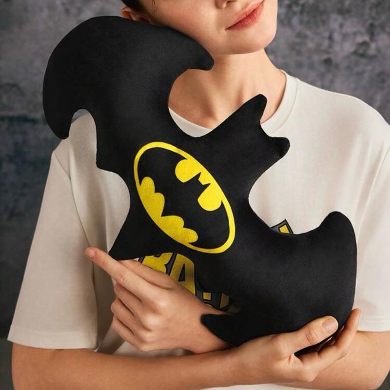 正版聯名 BATMAN蝙蝠俠 超級英雄蝙蝠徽章圖案刺繡裝飾抱枕 靠墊