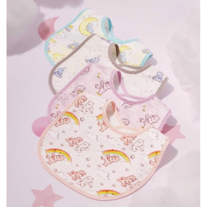 正版聯名 彩虹熊Care Bears 4 件組棉質卡通熊印花嬰兒圍兜 口水巾