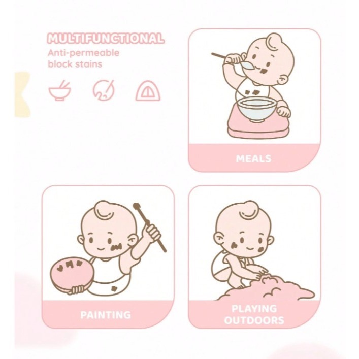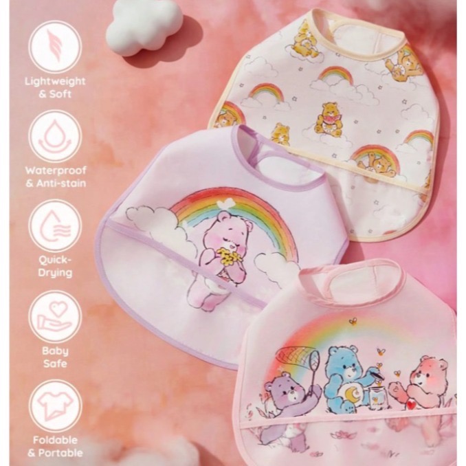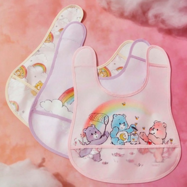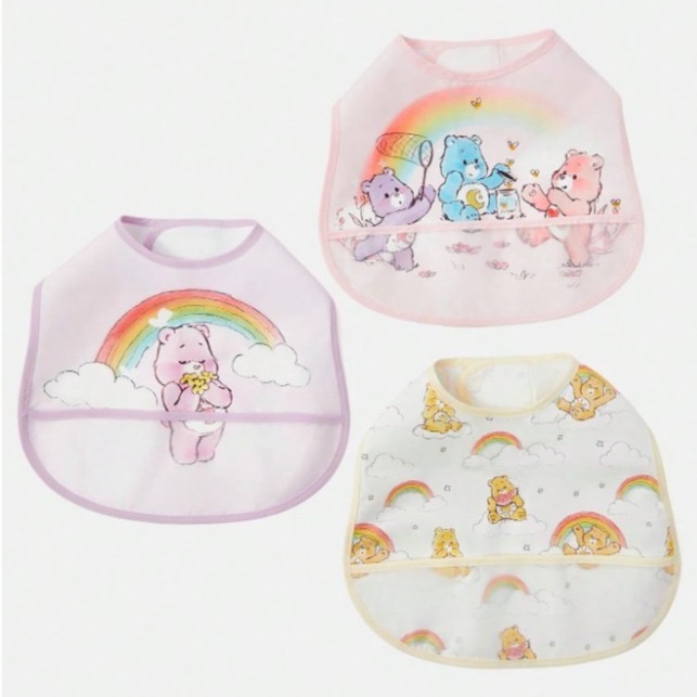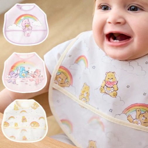 正版聯名 彩虹熊Care Bears 3件組0-3歲嬰兒防水圍兜 防水罩衣 吃飯圍兜
