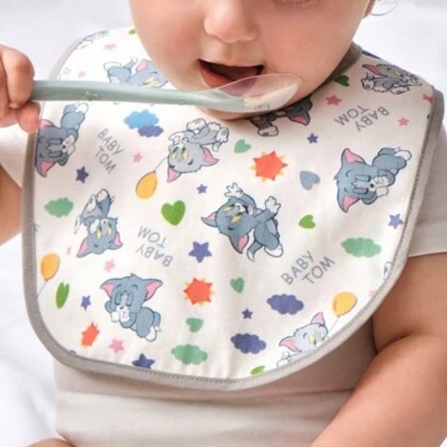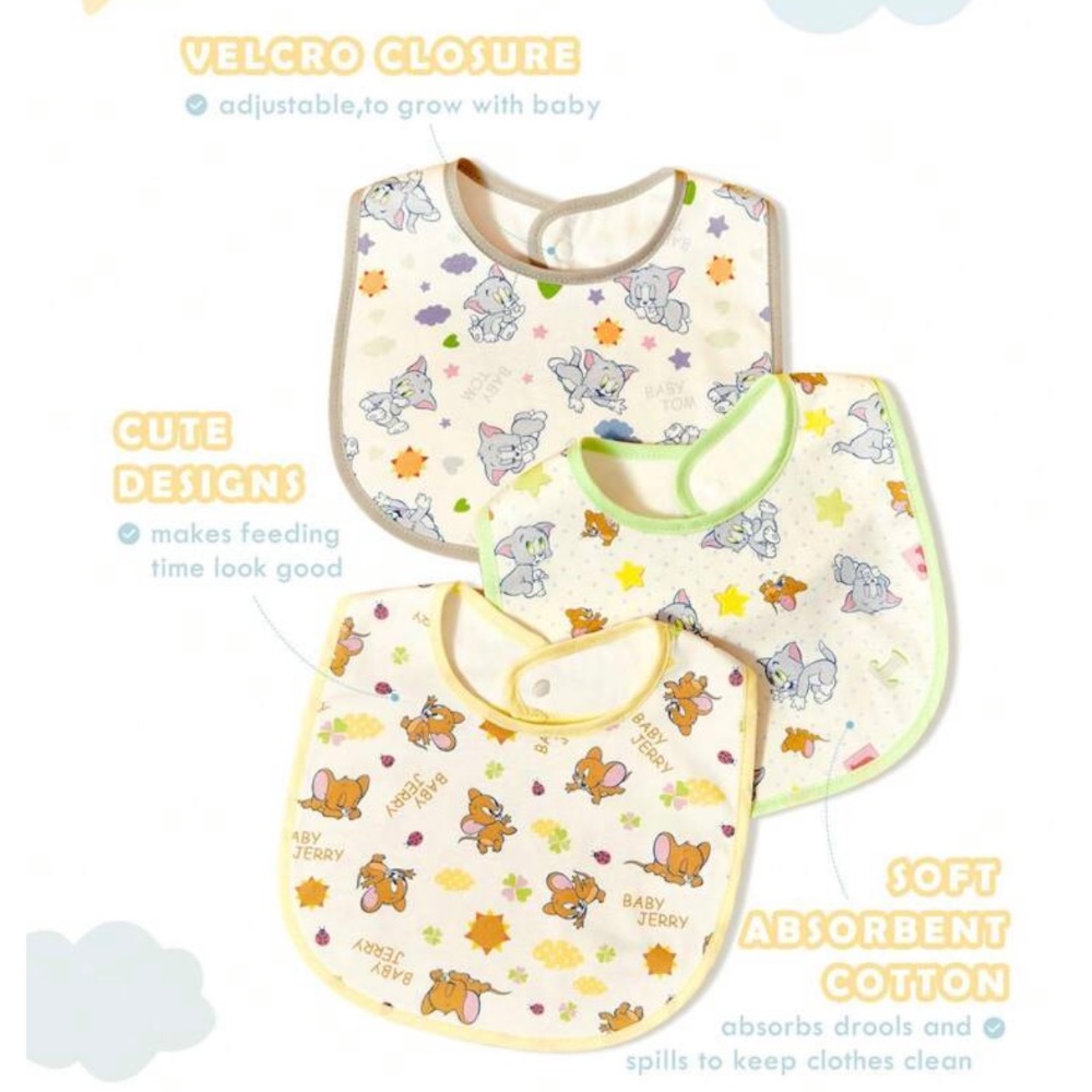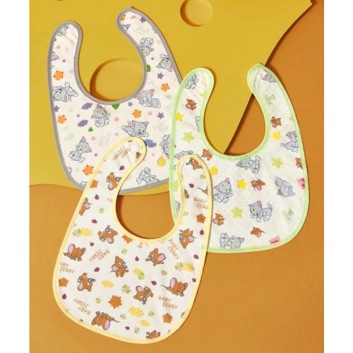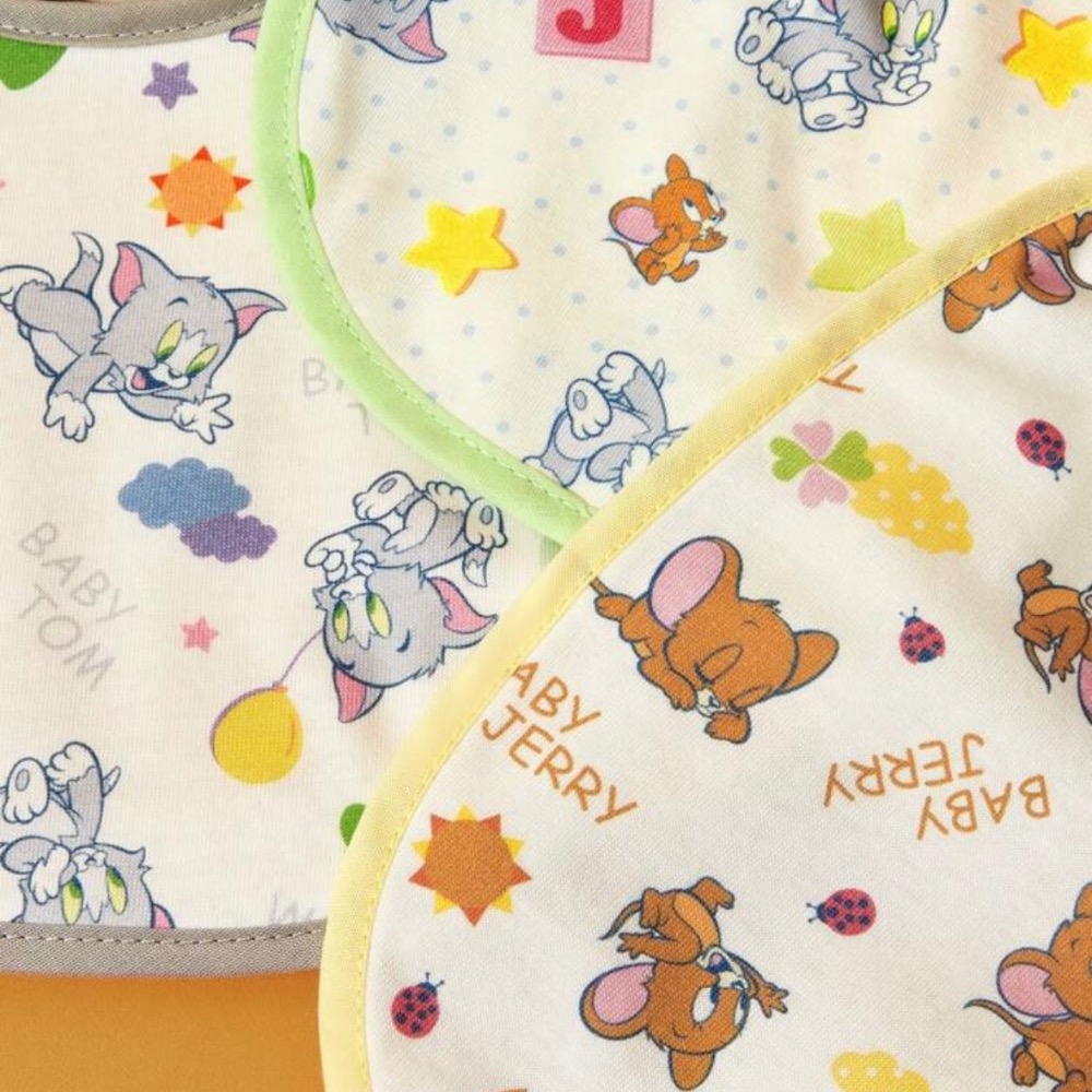 正版聯名 TOM&JERRY湯姆貓和傑利鼠 3入組純棉嬰兒圍兜 口水巾
