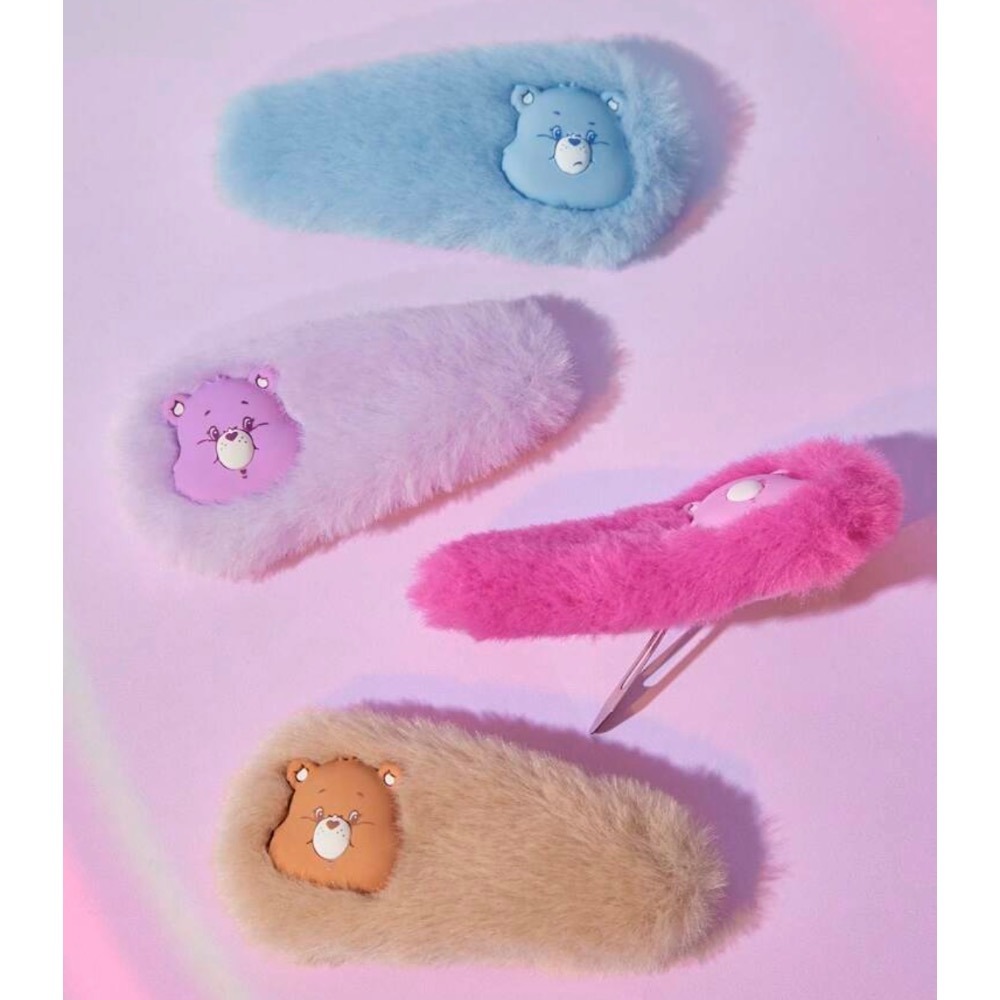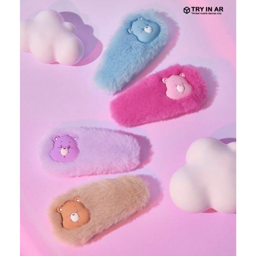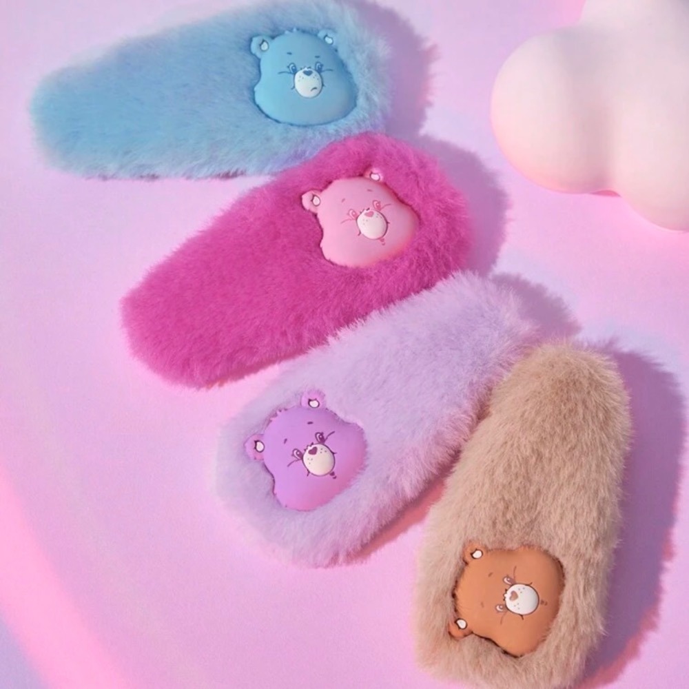 正版聯名 彩虹熊Care Bears 可愛3D熊絨毛髮夾4件組(粉/紫/藍/橘色)