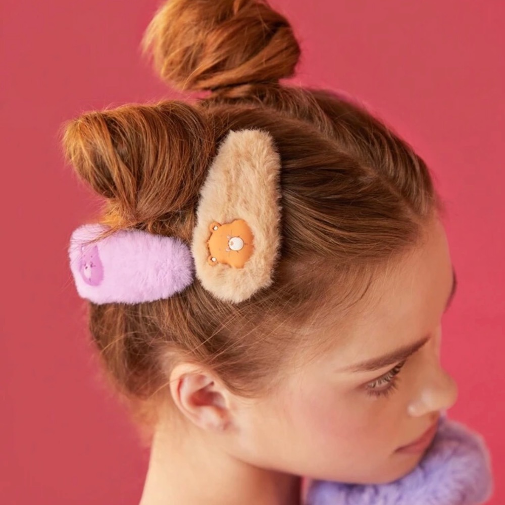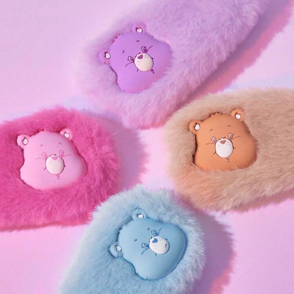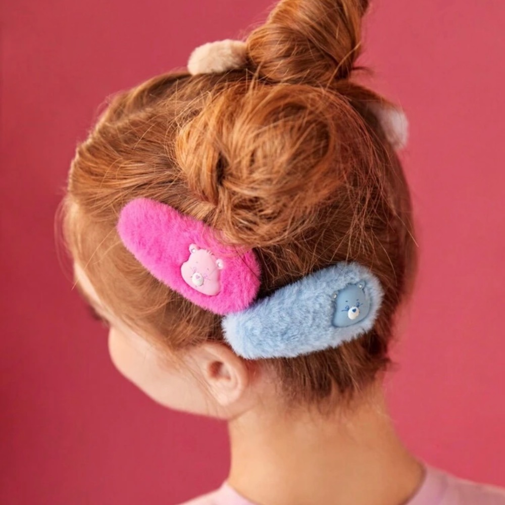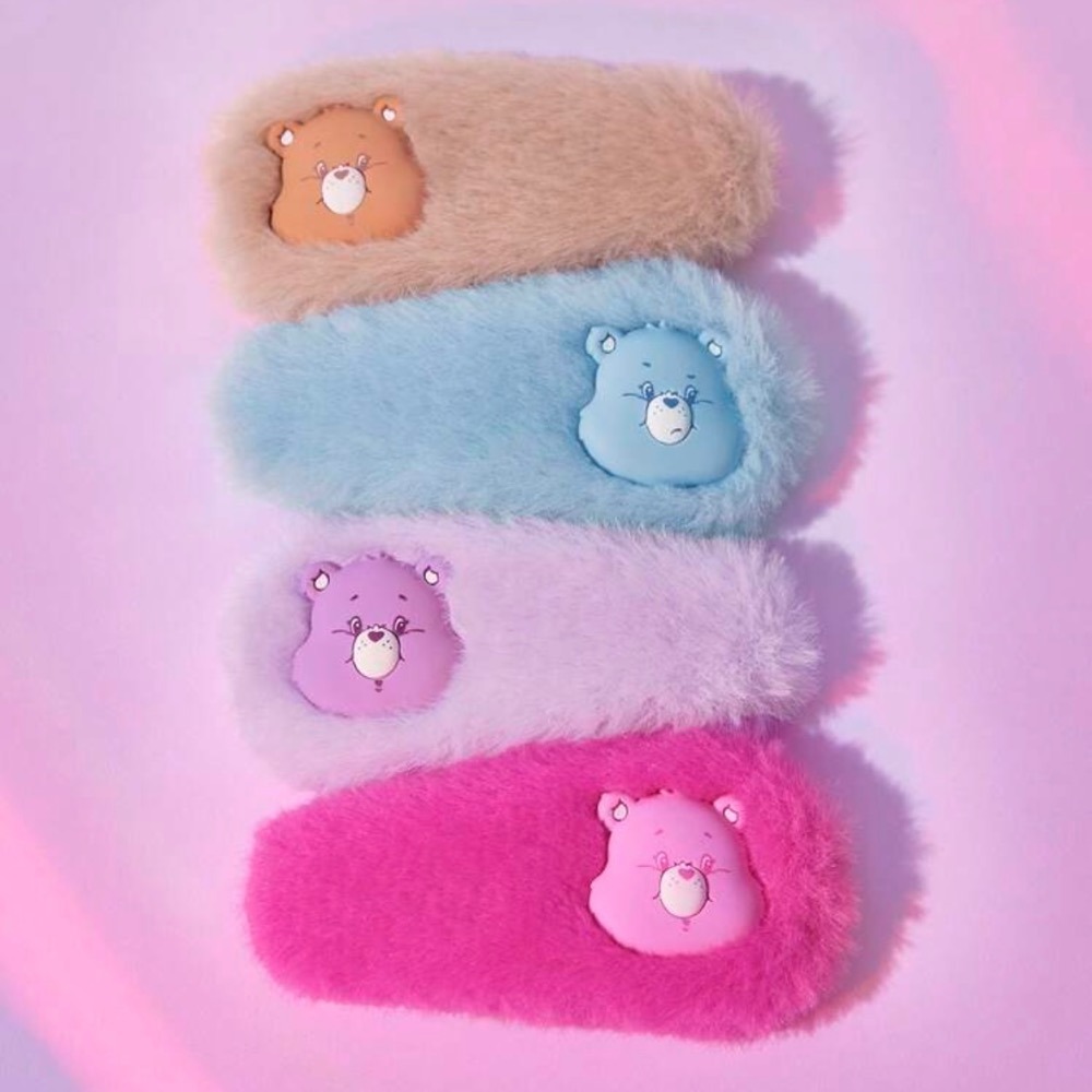 正版聯名 彩虹熊Care Bears 可愛3D熊絨毛髮夾4件組(粉/紫/藍/橘色)