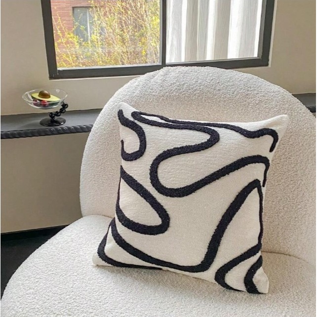 條紋雪尼爾布料刺繡裝飾枕套(不附帶枕頭芯)1入組 現代簡約風抱枕枕套 方形抱枕 靠背枕 沙發抱枕