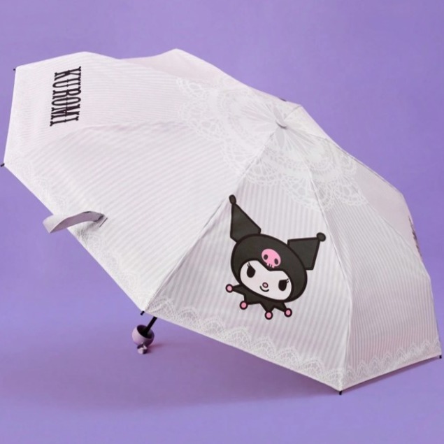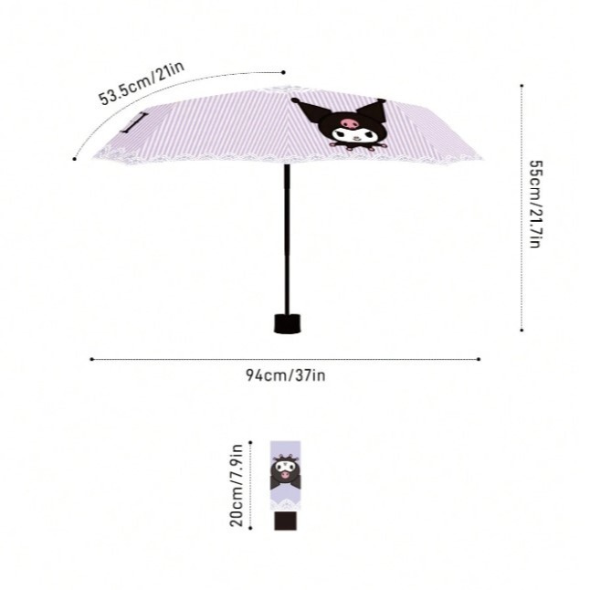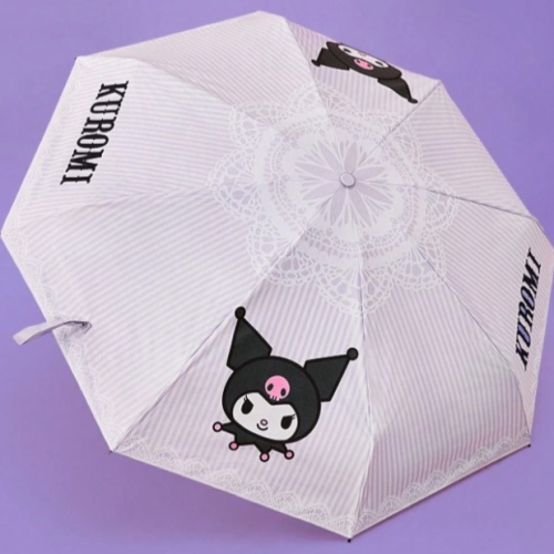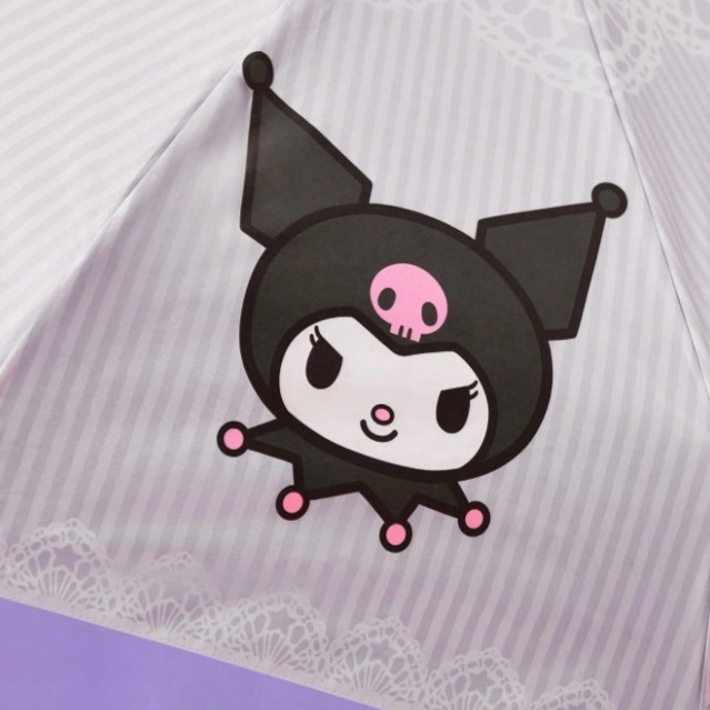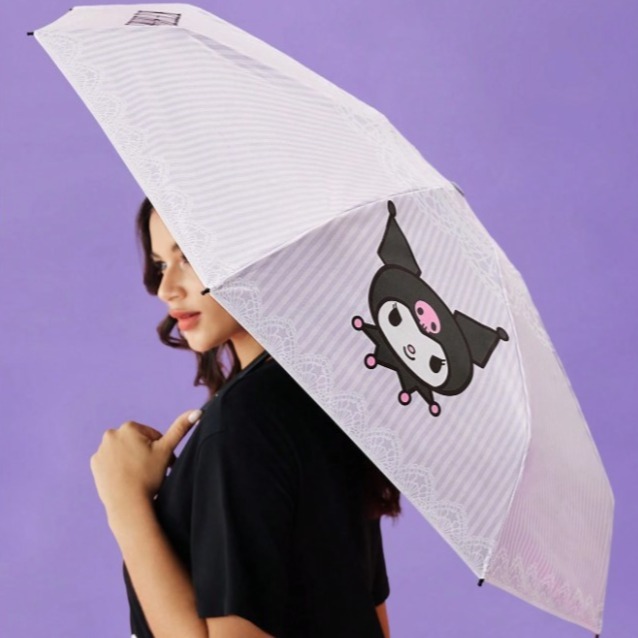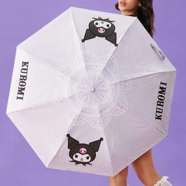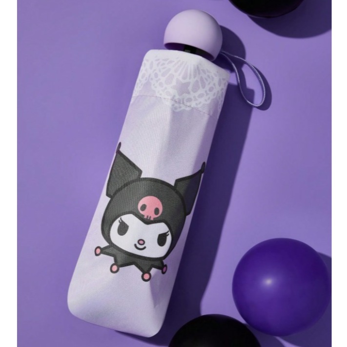 正版聯名 三麗鷗庫洛米 紫色條紋造型五折晴雨傘 黑膠防曬塗層抗UV防曬雨傘