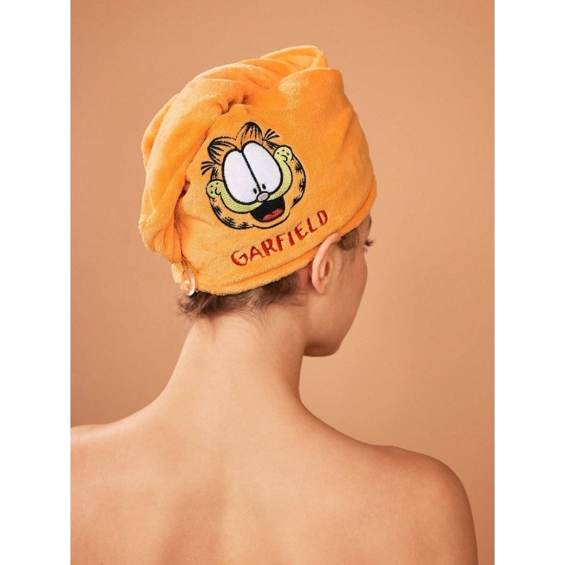 正版聯名 GARFIELD加菲貓 卡通珊瑚绒刺繡乾髮巾 吸水乾髮帽