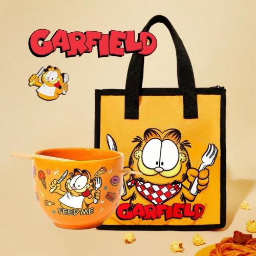 正版聯名 GARFIELD加菲貓 卡通圖案620ml大容量陶瓷泡麵碗(附筷子)+贈手提便當袋