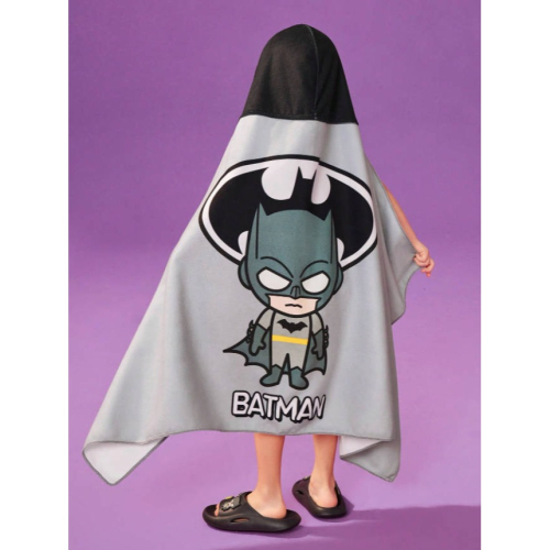 正版聯名 BATMAN蝙蝠俠 超級英雄可愛卡通英雄灰色連帽浴巾,超強吸水