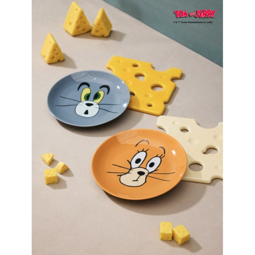正版聯名 TOM&JERRY湯姆貓和傑利鼠 可愛圓形陶瓷食品級餐盤 陶瓷盤 點心盤 水果盤 盤子
