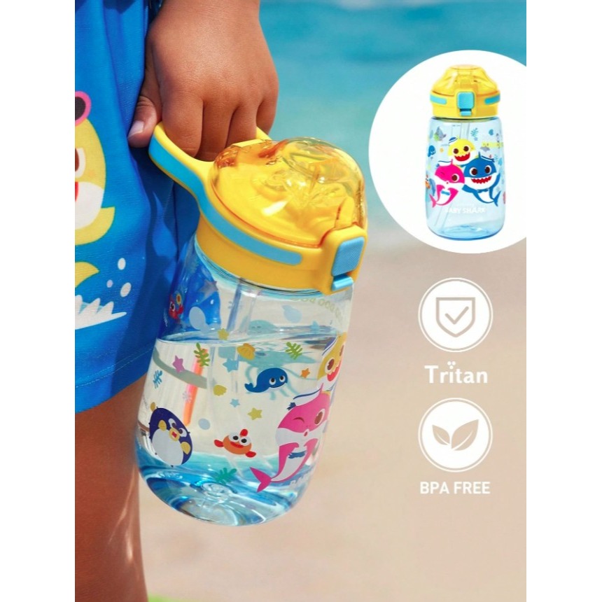 正版聯名 鯊魚寶寶 BABY SHARK 500ml兒童水壺Tritan材質 防漏矽膠彈出式吸管冷水壺 不含BPA