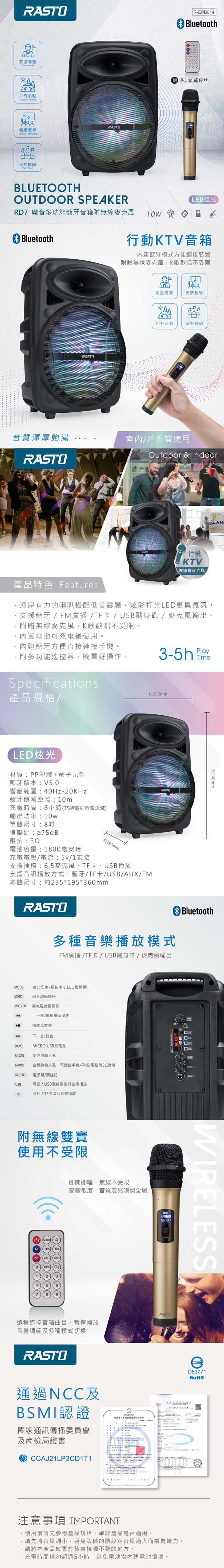 .多功能播放模式,支援藍牙/FM廣播/TF卡/USB隨身碟/麥克風輸出