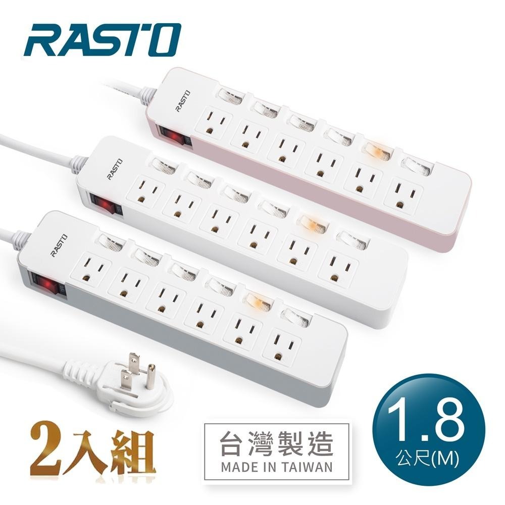 【2入組】RASTO FE6 七開六插三孔延長線 ( MIT)- 1.8M