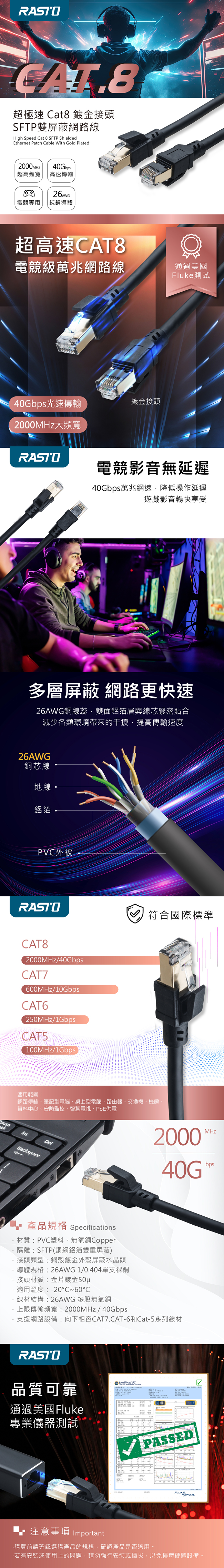 .適用各類網路設備,並可向下相容CAT7,CAT-6和Cat-5系列線材