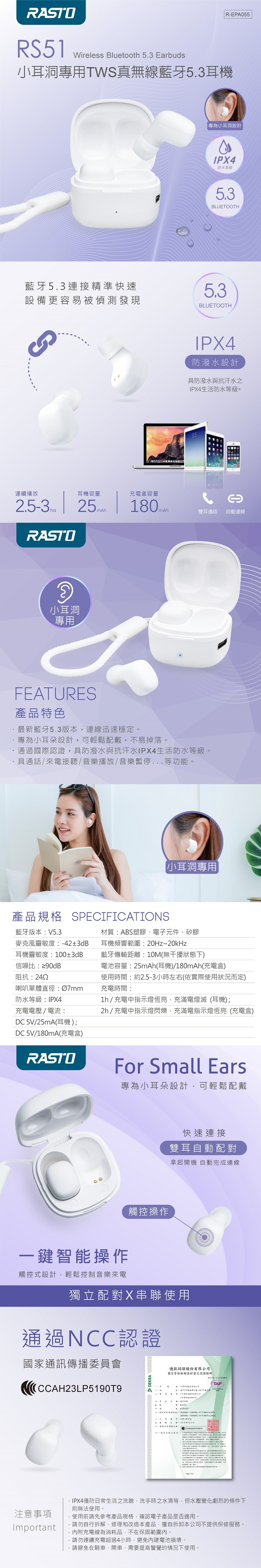 RASTO RS51 小耳洞專用TWS真無線藍牙5.3耳機