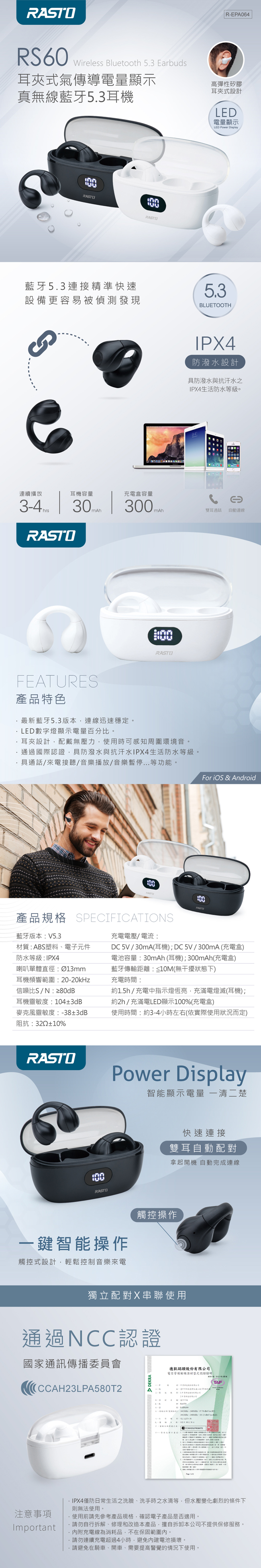 .充電電壓/電流: DC 5V/30mA(耳機); DC 5V/300mA(充電盒)