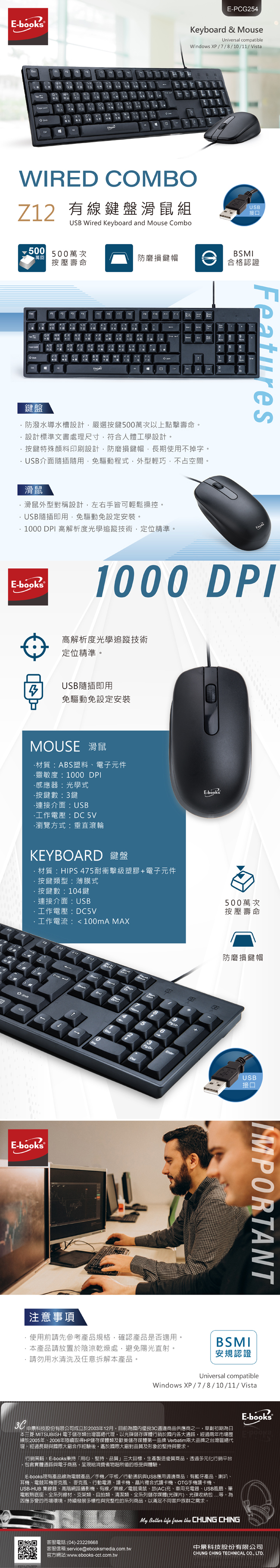 商品說明: .BSMI識別碼:滑鼠R45146, 鍵盤D45146 .滑鼠檢磁型號:KCP-CT101 .鍵盤檢磁型號:13-EKS351 鍵盤 .防潑水導水槽設計,嚴選按鍵500萬次以上點擊壽命 .設計標準文書處理尺寸,符合人體工學設計 .按鍵特殊顏料印刷設計,防磨損鍵帽,長期使用不掉字 .USB介面隨插隨用,免驅動程式,外型輕巧,不占空間 滑鼠 .滑鼠外型對稱設計,左右手皆可輕鬆操控 .USB隨插即用,免驅動免設定安裝 .1000 DPI高解析度光學追蹤技術,定位精準 商品規格: 鍵盤 .材質:HIPS 475耐衝擊級塑膠+電子元件 .按鍵類型:薄膜式 .按 鍵 數:104鍵 .連接介面:USB .工作電壓:DC 5V .工作電流:<100mA MAX 滑鼠 .材質:ABS塑料、電子元件 .靈敏度:1000 DPI .感 應 器:光學式 .按 鍵 數:3鍵 .連線介面:USB .工作電壓:DC 5V .瀏覽方式:垂直滾輪 .商品尺寸:52(L)x4(W)x15(H)cm .產品重量:557g .產地:中國 .貨源:公司貨 .保固說明:依商品送達日起保固6個月