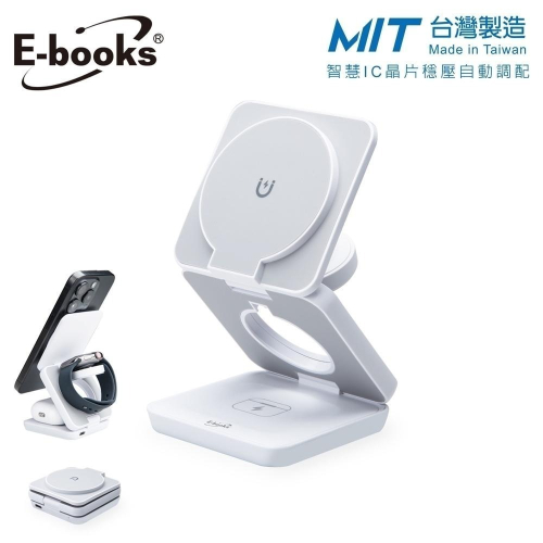 E-books B98 【台灣製造】22W三合一支架摺疊磁吸快充無線充電器