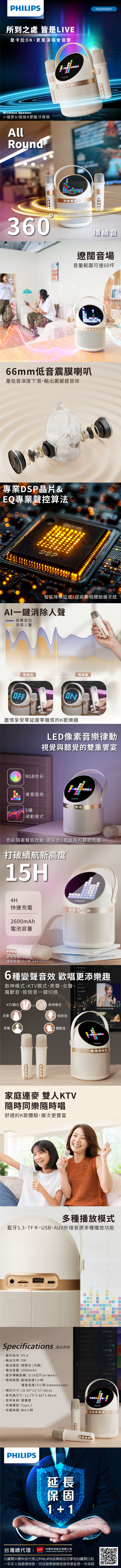 .使用時間:歡唱長達7小時 播放長達15小時(依實際使用狀況而定)