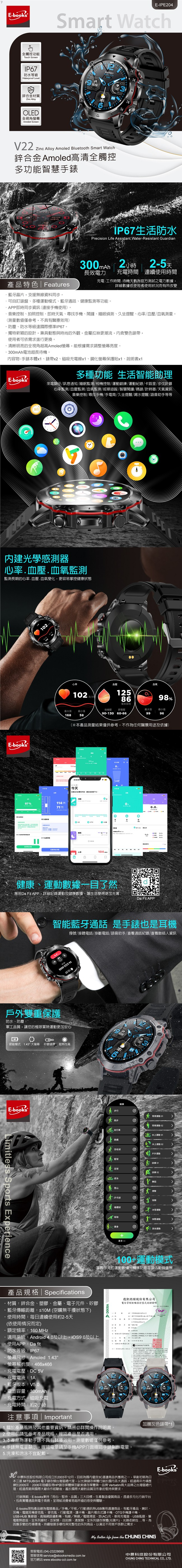 E-books V22 鋅合金Amoled高清全觸控多功能智慧手錶 父親節好禮 禮物推薦 質感好禮