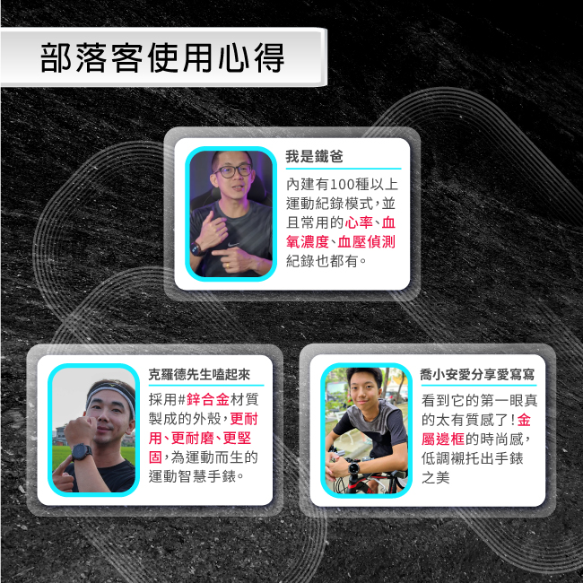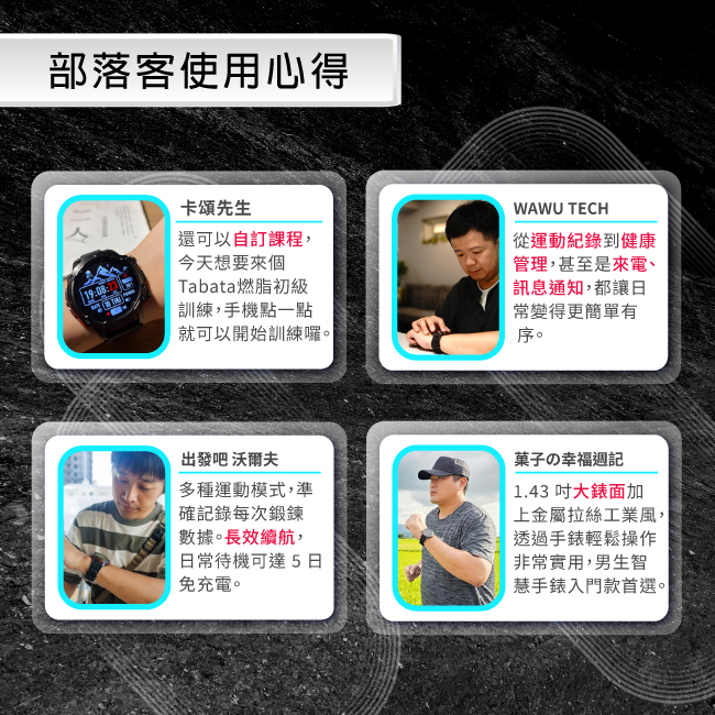 商品說明: .NCC號碼:CCAH24LP1530T8 .藍牙晶片,支援無線資料同步 .可自訂錶盤、多種運動模式、藍牙通話、健康監測等功能 .APP即時同步資訊(連接手機使用) .音樂控制、拍照控制、即時天氣、尋找手機、鬧鐘、睡眠偵測、久坐提醒、心率/血壓/血氧測量 (測量數值僅參考,不具有醫療效用) .防塵、防水等級達國際標準IP67 .獨特新穎的設計,兼具動態與時尚的外觀,金屬拉絲更潮流,內含雙色錶帶,使用者可依需求進行更換 .清晰明亮的全視角超高Amoled螢幕,能根據需求調整螢幕亮度 .300mAh電池超長待機 ※內容物:手錶本體x1、錶帶x2、磁吸充電線x1、說明書x1 商品規格: .材質:鋅合金、塑膠、金屬、電子元件、矽膠 .螢幕尺寸:Amoled 1.43'' .藍牙傳輸距離:≤10M (空曠無干擾狀態下) .使用時間:每日連續使用約2-5天 (依使用情況而定) .額定頻率:160 MHz .適用系統:Android4.0及以上,iOS9.0及以上 .使用APP:Da fit .防水等級:IP67 .螢幕解析度:466x466 .充電電壓:DC 5V .充電電流:1A .藍牙版本:V5.0 .電池容量:300mAh .充電方式:磁吸充電 .充電時間:約2小時 .商品尺寸:20.6(L)x8.1(W)x2.8(H)cm .產品重量:67g .產地:中國 .貨源:公司貨 .保固說明:依商品送達日起保固6個月