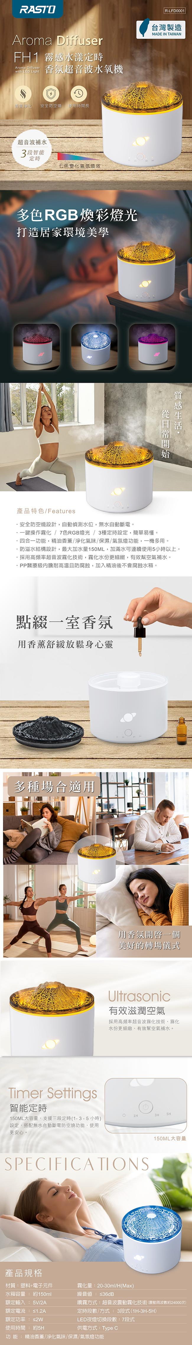 【台灣製造】RASTO FH1 霧感水漾定時香氛超音波水氧機