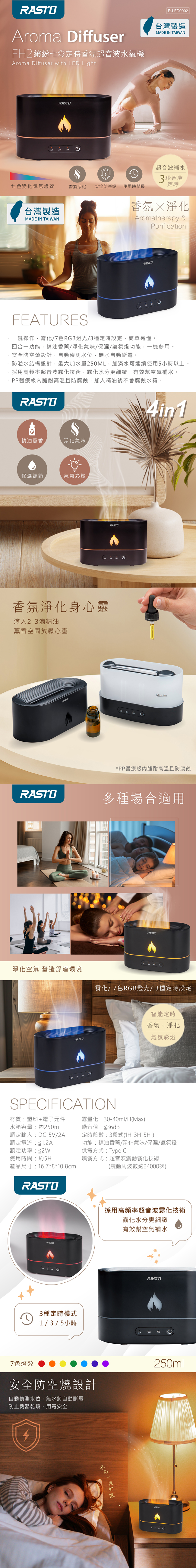 【台灣製造】RASTO FH2 繽紛七彩定時香氛超音波水氧機