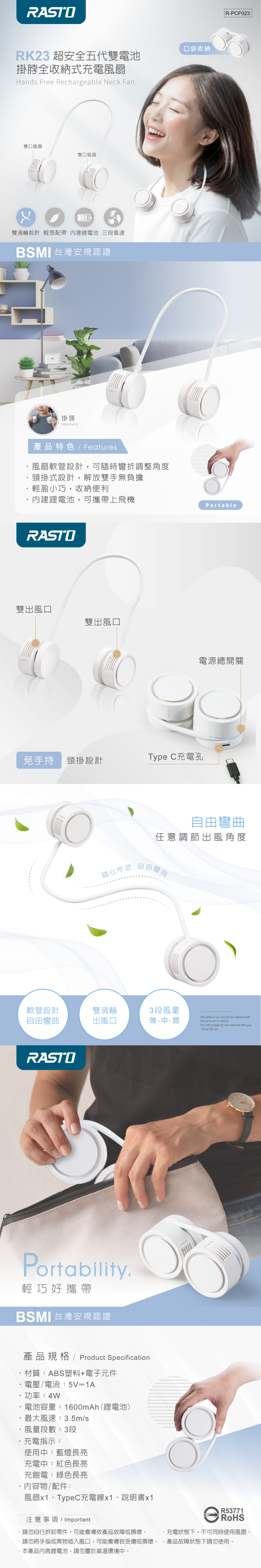 RASTO RK23 超安全五代雙電池掛脖全收納式充電風扇