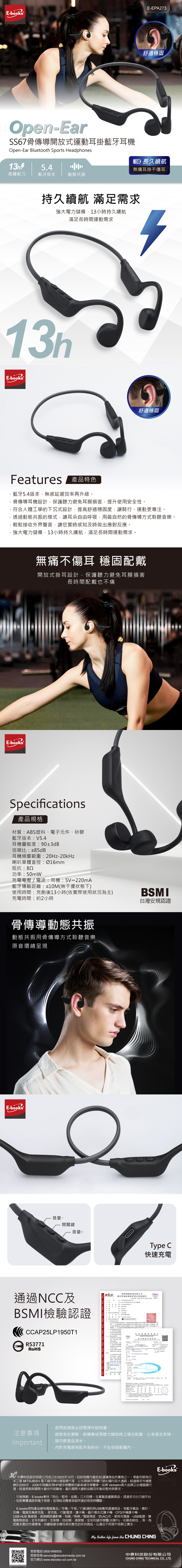 E-books SS67 骨傳導開放式運動耳掛藍牙耳機