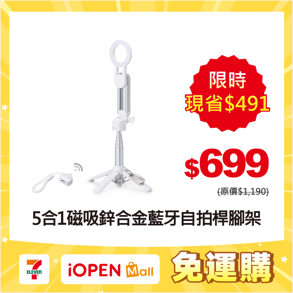 【7-ELEVEN 門市團購】RASTO 五合一強力磁吸萬向單反鋅合金藍牙自拍桿腳架( RN.5)