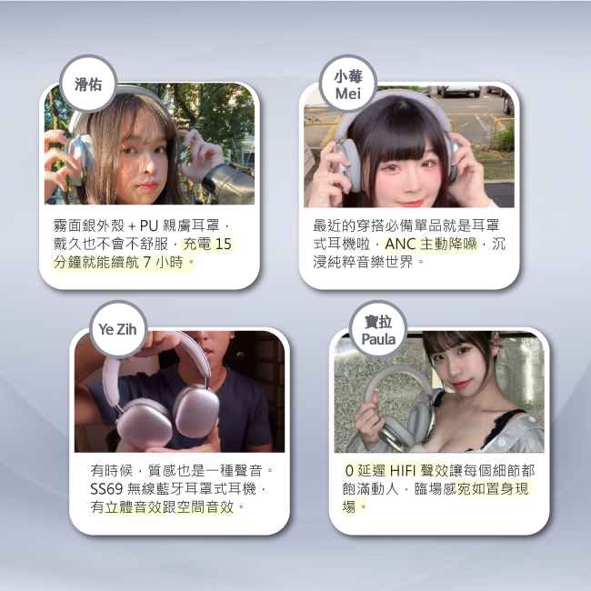 E-books SS69 AI空間音訊360度8D環繞ANC+ENC藍牙6.0頭戴耳機