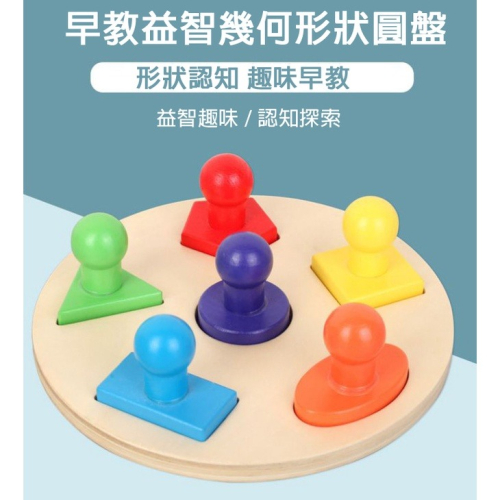 ♥ 現貨~ 兒童教具~ 蒙氏教具 木製幾何形狀 認知圓盤~ 幼兒寶寶益智早教~形狀配對趣味玩具