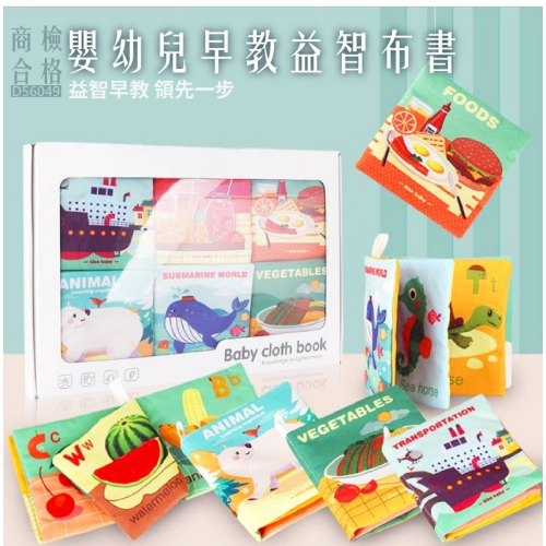♥ 現貨~彌月送禮/自用兩相宜~6本一套寶寶布書~益智啟蒙布書 ~撕不爛帶響紙 寶寶布書~英文版 寶寶布書觸摸書