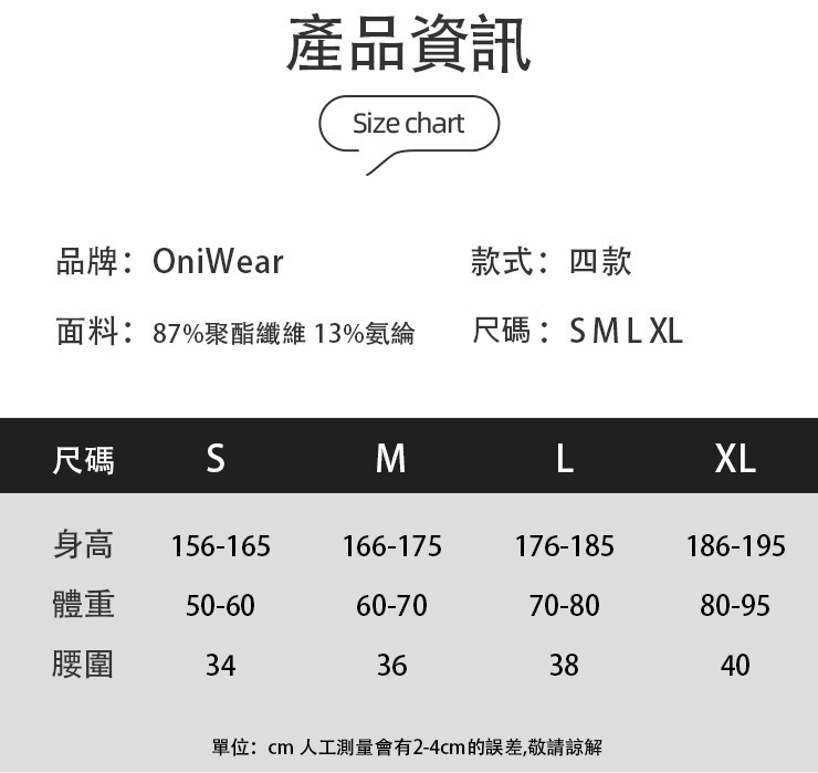 ⚠️ 尺寸表上的建議身高/體重表為廠商經多方試驗後統整出的參考數據,以供消費者能快速方便選購,但因每人身形(體脂、骨架、臀圍等)及喜歡穿著寬鬆度的主觀感受等等都不同,故無法100%適用於每個人。