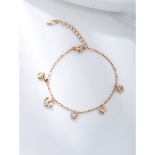 這款金色時尚船錨船鉈星星貝殼流蘇手鍊,充滿濃郁的海洋風情與時尚元素,讓你仿若置身於陽光與海浪間。手鍊採用優質鍍金材質,閃耀的金色光澤與多種海洋圖案細節相互輝映,精巧的船錨、船鉈、星星和貝殼吊飾為手鍊增添了獨特的個性和魅力。每一個吊飾都象徵著對自由與冒險的向往,適合熱愛探索和享受生活的你。