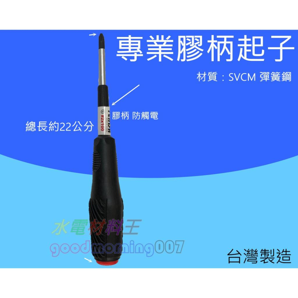 ☆水電材料王☆ 螺絲起子 十字 一字 修膳 十字起子 膠柄起子 短 台灣製造 #2*100