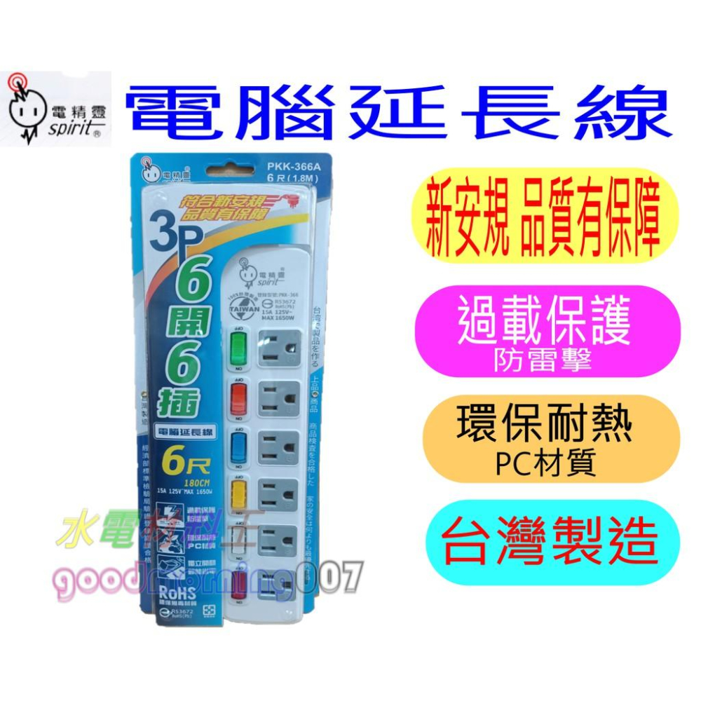 ☆水電材料王☆新安規 電精靈 電腦延長線 延長線 PKK-366A 6開6插 6尺 台灣製造