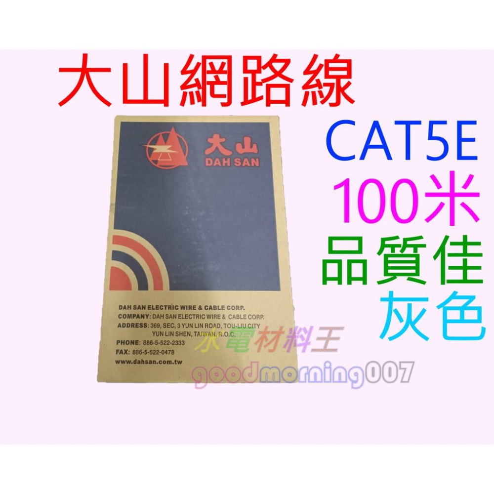 ☆水電材料王☆ 大山網路線 100米室內 室外 網路線 CAT.5E 灰色