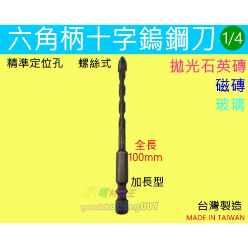☆水電材料王☆ 黑熊 六角柄 十字鎢鋼刀 1/4 單支 加長型 台灣製造 磁磚 玻璃 拋光石英磚 鎢鋼原料