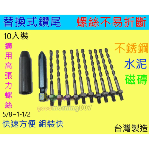 ☆水電材料王☆ 黑熊 水泥替換式鑽尾 水泥 磁磚 不銹鋼 快速方便 組裝快 台灣製造
