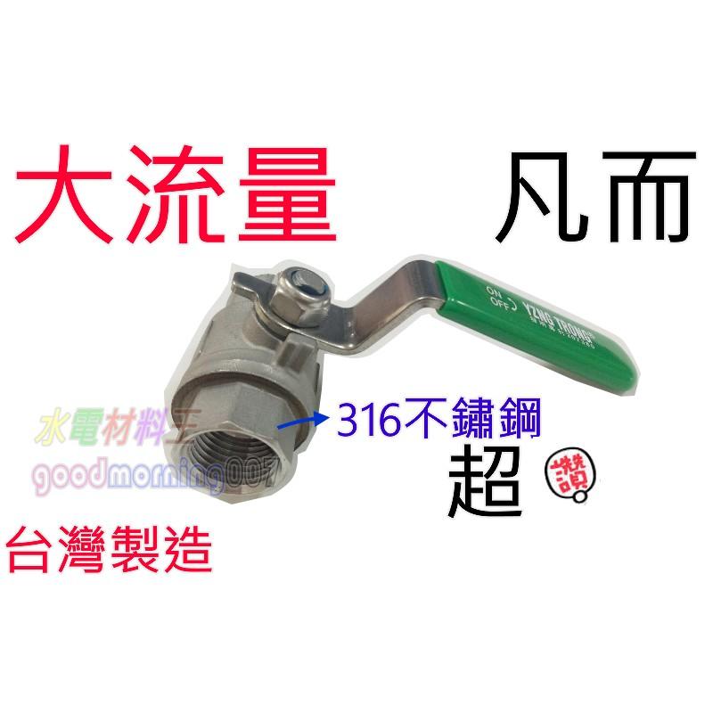 ☆水電材料王☆大流量 #316 止水閥 1/2" 球塞凡而 3/4" 凡而 球塞開關 開關 球體閥 大水量