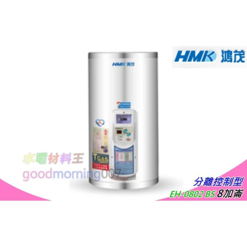 ☆水電材料王☆ 鴻茂 EH-0802BS 壁掛式 數位化分離控制型 電能熱水器 8加侖 節能省電(單相) 部份地區免運