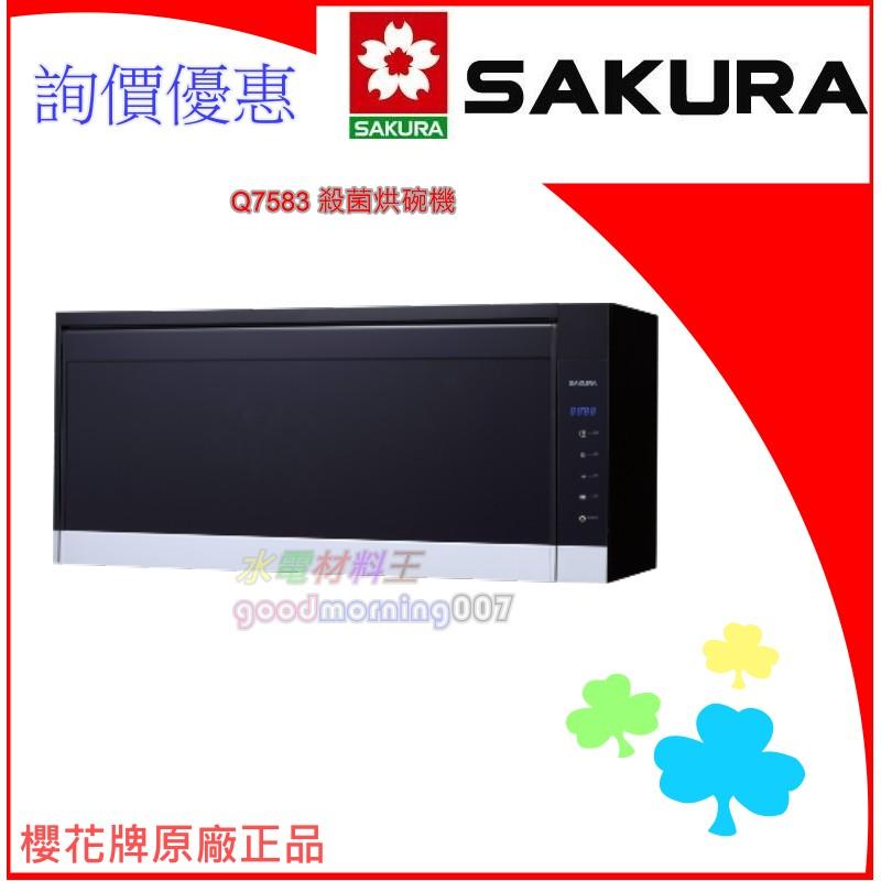 ☆水電材料王☆ "詢價優惠" 櫻花牌 SAKURA 熱銷款 吊掛系列 Q7583L Q7583XL 殺菌烘碗機