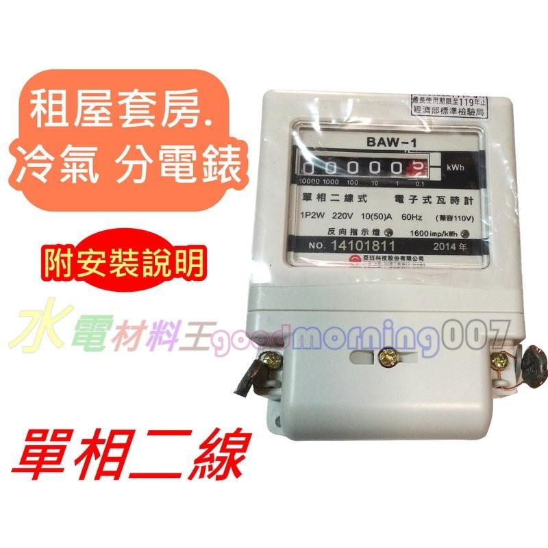 ☆水電材料王☆ 含稅 亞珏電子式分電表 單相二線瓦時計 電視 冷氣分電錶 租屋套房 分電表 另有單相三線