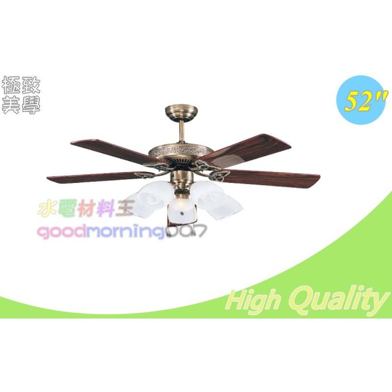 ★極致美學館╯☆水電材料王☆ 52吋 吊扇古典風格 古銅 太平洋鐵木 (石紋玻璃燈組另計)