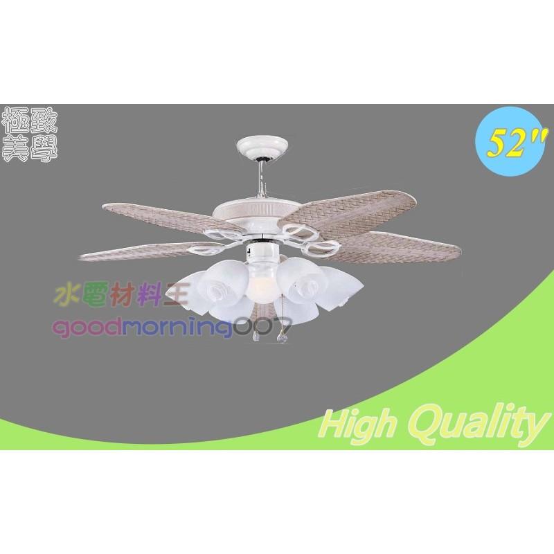 ★極致美學館╯☆水電材料王☆ 52吋 吊扇古典風格 巧克力/白 仿竹編扇 (石紋玻璃燈組另計)<改DC附遙控器>