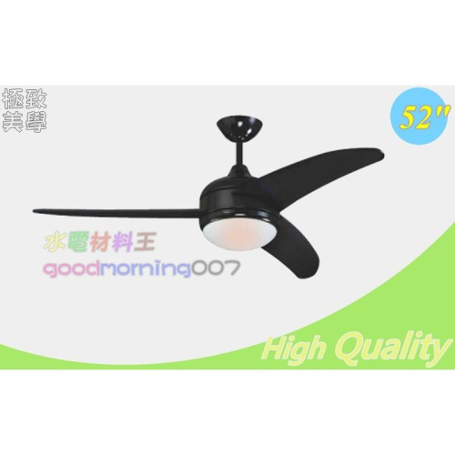 ★極致美學館╯☆水電材料王☆ 52吋 吊扇清靜調光 貴族黑 白玉毛霧玻璃燈組附搖控器