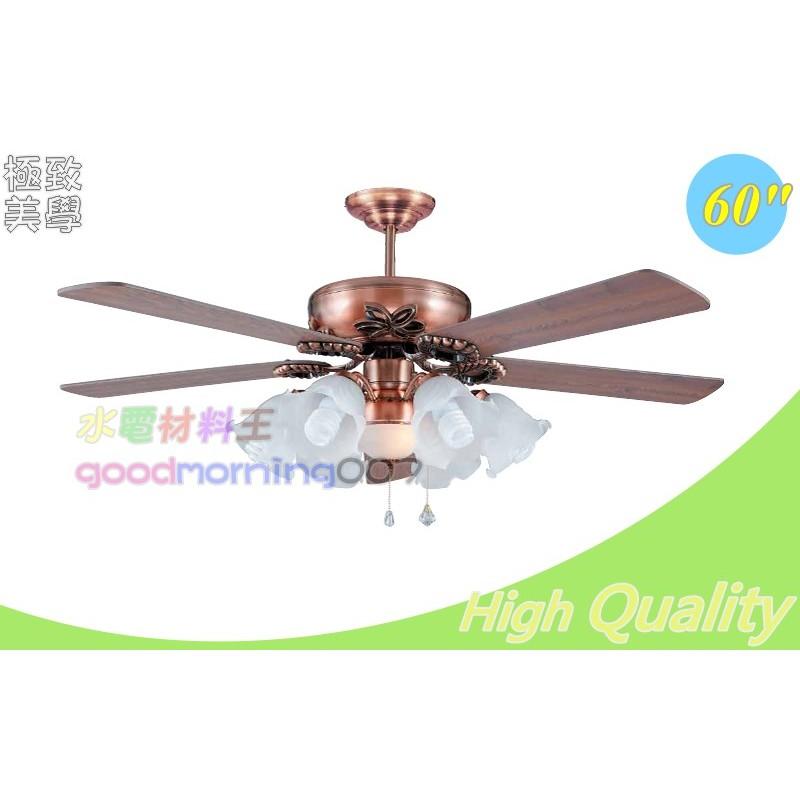 ★極致美學館╯☆水電材料王☆ 60吋 古典風格 紅古銅 楠木(毛霧玻璃燈組另計) <改DC附遙控器>