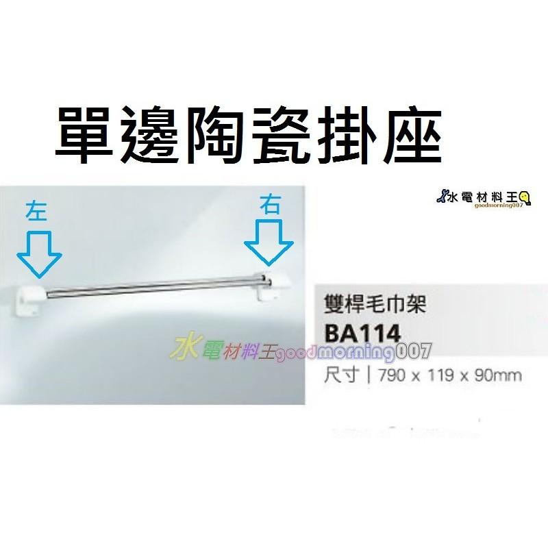 ☆水電材料王☆【HCG和成】和成浴室配件 和成衛浴配件BA114 雙桿毛巾架單邊陶瓷掛座 雙桿毛巾架
