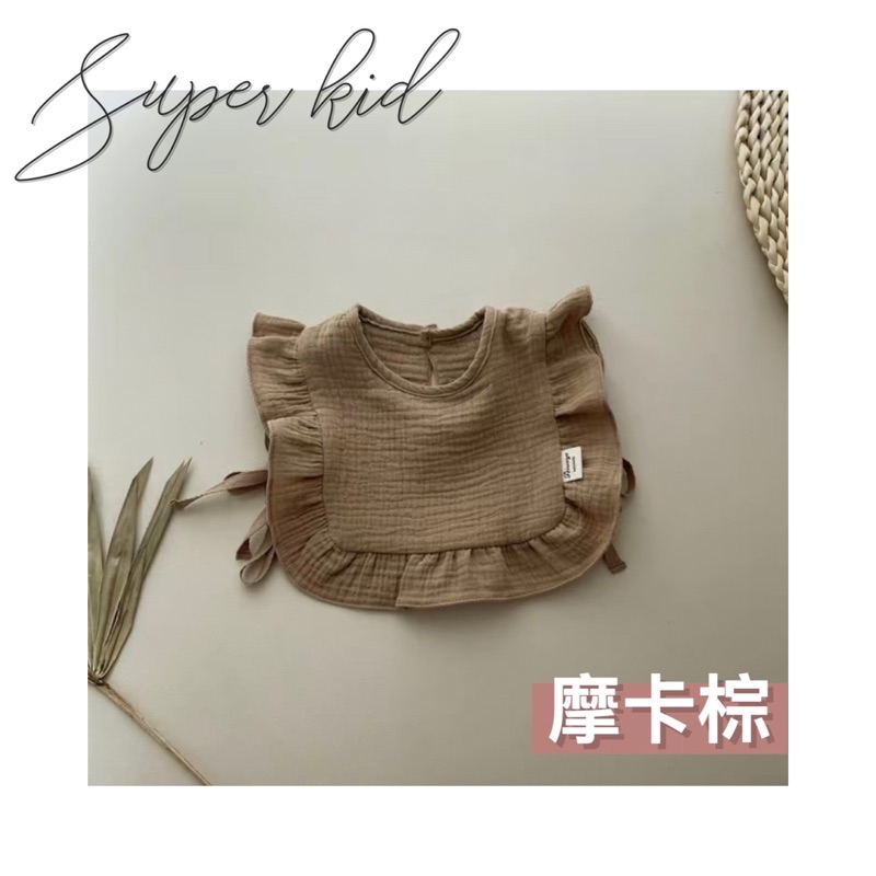 真的超級韓的~簡單一件素色衣服搭圍兜就超可愛超韓