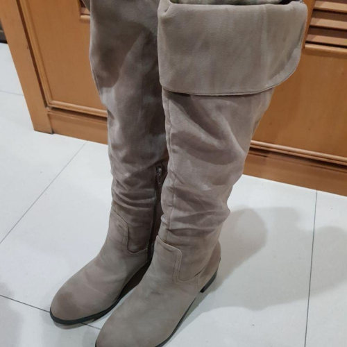 #麂皮#長靴#膝上靴#尺寸#25cm#40號#大尺碼#即膝靴#不掉筒#兩種穿法#內裡#薄#刷毛#保暖 只穿過一次 應該不是真皮 只是麂皮感