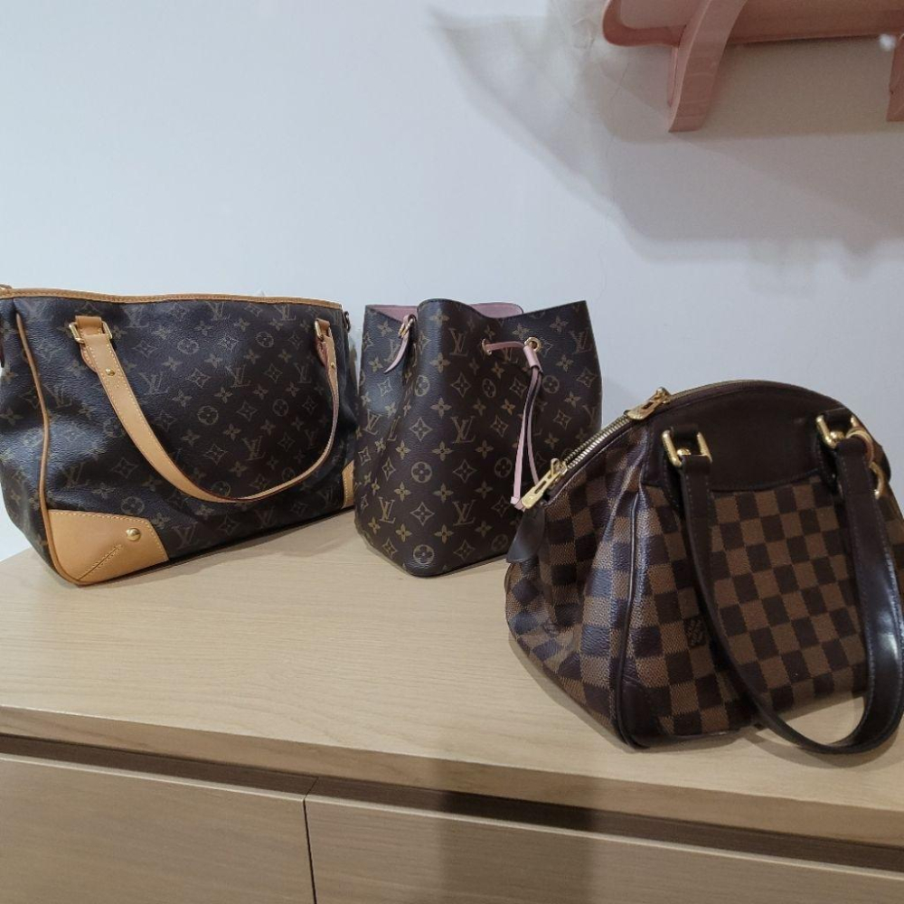 #二手#LV#Louis#vuitton#肩#背#包#graceful#pm#hobo#包 #neo#noe#粉#色#大#水桶#包#大型#方#包#monogram#棕#色#棋盤#紋#damier#ebene#mm#老#花#手提包#水餃皮#verona#水餃#estrela#pm 有興趣請聊聊提供更多圖片 由左到右 如是原色皮背帶或飾邊會因環境濕氣自然變色成有點淺蜂蜜色或更深的顏色;或因接觸到手部擦的護手霜(每個包就算同型號變色狀況不會全一樣,要看使用者使用情形或生活環境溫度濕度等),入手前建議先上網了解下 原色皮如遇外部水滴易生水漬,建議雨天不要使用,介意者請考慮2.3號包即可 1.大型monogram estrela 方包85新原色皮飾邊與提把- A4可,除了一條不可拆肩背帶,還有一條可拆式原色皮肩帶(現在一條專櫃單賣都要超過一萬) 包包長34cm寬15cm高26.5cm 俗稱老花LV招牌帆布袋,原色皮已自然變色,不喜歡用大包,很少使用,內裡跟外部帆布乾淨 11~12年以上的二手包,有點忘了,因朋友蜜月幫我國外買回的,無購證,只有防塵袋 2.Neonoe MM 9成新-粉色牛皮提把,可側背斜背,肩帶可調製,水桶帆布monogram包包,A4不可,有購證防塵袋,現專櫃8萬1千元 3.demier ebene verona pm棕色棋盤紋7成新手提包-可肩背但包體比較立體問題,比較容易卡卡的,手提比較方便,購與信義區二手店 長31,寬15高約20cm